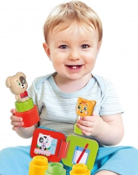 - 6 miękkich klocków, 3 klocki z figurkami zwierzątek, ilustrowana książeczka