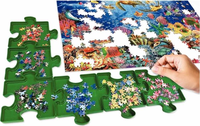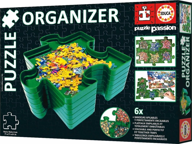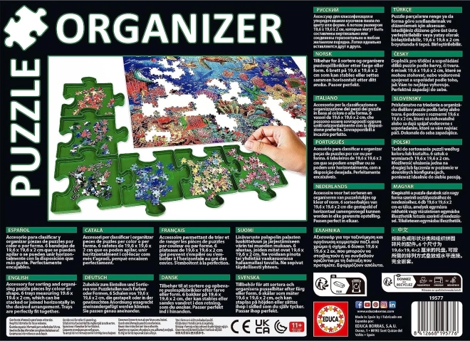 Ułatw sobie układanie puzzli z organizerem EDUCA. Dzięki sześciu praktycznym miseczkom w kształcie elementów możesz przejrzyście sortować części według koloru, kształtu lub motywu, przyspieszając tym samym postęp układania. Pojemniki idealnie do siebie pasują, więc wszystko pozostaje na swoim miejscu.