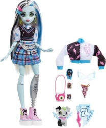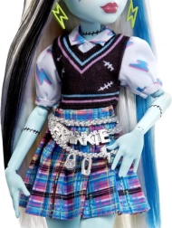 Lalka Frankie Stein jest gotowa lśnić na szkolnych korytarzach z jedynym w swoim rodzaju stylem. Jej strój zawiera stylową koszulkę w kratę, bluzkę z motywem piorunów i kamizelkę, które uzupełniają buty na platformie oraz inne dodatki jak okulary i kolczyki w kształcie piorunów.