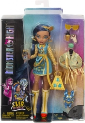 W zestawie znajduje się także kurtka z frędzlami oraz pakiet dodatków do codziennych potwornych historii: piramidowy plecak ze skarabeuszem, „burrito”, napój, „smartfon” i paletka do makijażu. Wierny pupil Tut inspiruje do zabaw w przyjaźń aż po samą kryptę. Dzięki artykulacji w tułowiu, łokciach, nadgarstkach i kolanach Cleo jest gotowa na dynamiczne pozowanie i zdjęcia.