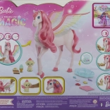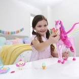 Wznieś się na skrzydłach fantazji z różowym pegazem od Barbie! Ten magiczny pegaz oferuje funkcje świetlne i dźwiękowe, uzupełnione o magicznego pieska i słodkie akcesoria.