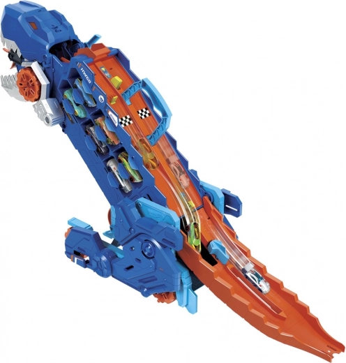 Na grzbiecie T‑Rexa czeka dwupasmowy tor wyścigowy do emocjonujących pojedynków. Zwycięzca jedzie dalej, a przegrany jest „wypuszczany” przez dinozaura – idealne do rywalizacyjnej zabawy. Auta można także wystrzeliwać prosto z paszczy dla dodatkowej akcji. W pudełku znajdziesz 2 autka HOT WHEELS 1:64, więc zabawa zaczyna się od razu.