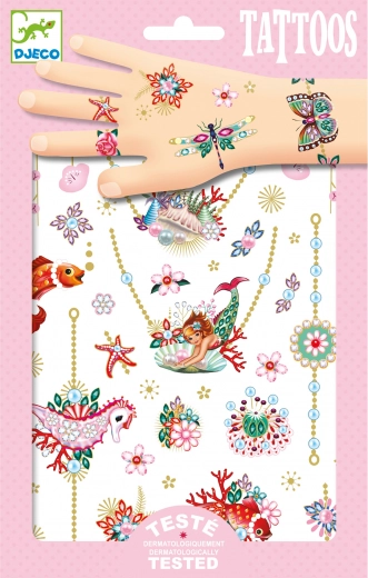 Ozdób swoją skórę eleganckimi motywami biżuterii dzięki tymczasowym tatuażom DJECO. Zestaw zawiera 2 arkusze z bransoletkami, pierścionkami i naszyjnikami. Aplikacja jest łatwa, szybka i dermatologicznie testowana, więc możesz cieszyć się bezpieczną i kreatywną zabawą z przyjaciółkami.