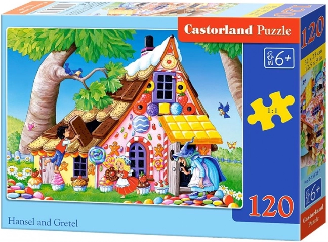 Kolorowe puzzle dla dzieci z motywem Jasia i Małgosi łączą zabawę i naukę. Układanka ma 120 elementów, a po ułożeniu powstaje obrazek 32 × 23 cm. Dzięki wysokiej jakości wykonania, żywym kolorom i wygodnym rozmiarom elementów dzieci ćwiczą cierpliwość, koncentrację, rozpoznawanie kształtów i kolorów oraz wyobraźnię przestrzenną.