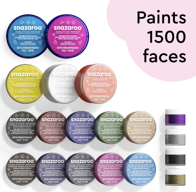 Profesjonalny zestaw do malowania twarzy i ciała SNAZAROO z bogatym wyposażeniem dla szkół, kółek i dużych wydarzeń. Oferuje długotrwałe, wyraziste i nasycone kolory, które są bezpieczne i nietoksyczne, odpowiednie także dla wrażliwej skóry. Łatwo zmywalne wodą i mydłem oraz wystarczą na co najmniej 1500 twarzy.