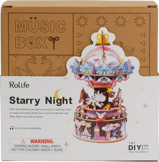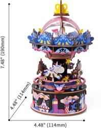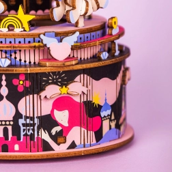 Robotime 3D puzzle Wesoły Karuzela to unikalny model karuzeli, który ucieszy każdego miłośnika pozytywek. Złóż i ciesz się znaną melodią z ruchomymi detalami.