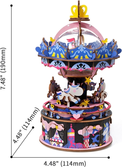 Ten szczegółowy model wesołej karuzeli marki Robotime to idealny wybór dla każdego kreatywnego entuzjasty. Puzzle są dostarczane w nieskładanej formie i zawierają szczegółową instrukcję montażu. Po złożeniu karuzela stanie się wspaniałą ozdobą Twojej przestrzeni.