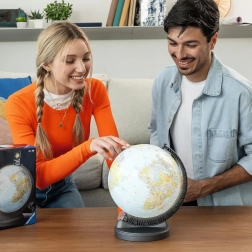 Zintegrowany moduł LED rozświetla kontynenty i państwa, dzięki czemu globus świetnie sprawdza się do wieczornego oglądania oraz jako stylowa dekoracja do pokoju dziecięcego lub salonu.