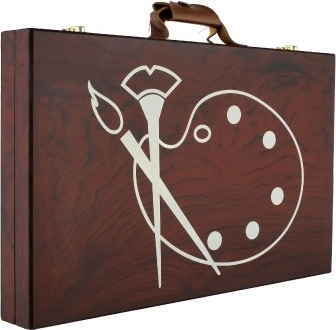Drewniana walizka pełna kolorów i przyborów jest doskonałym towarzyszem dla młodych twórców. Zawiera wszystko, czego potrzebujesz do malowania i rysowania, w eleganckim i łatwym do przenoszenia opakowaniu:
