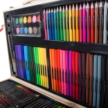 Kompletny zestaw plastyczny w eleganckiej drewnianej walizce dla dzieci i dorosłych oferuje aż 180 elementów do rysowania i malowania. Dzięki praktycznej walizce z uchwytem wszystko masz przejrzyście w jednym miejscu i łatwo przenośne. Idealny do rozwijania kreatywności, ćwiczenia różnych technik i nieskończonego tworzenia w domu, w szkole i w podróży.