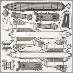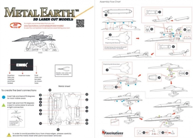 Poszczególne części wyjmij z metalowych arkuszy, w razie potrzeby użyj małych cążek (nie dołączone). Elementy łączy się za pomocą zamków tworzonych przez zaczep (dzióbek) i otwór. Zaczep zegnij przy pomocy małych, cienkich szczypiec (nie dołączone) i stopniowo połącz wszystkie zamki, aż powstanie bardzo realistyczne, mistrzowskie dzieło!