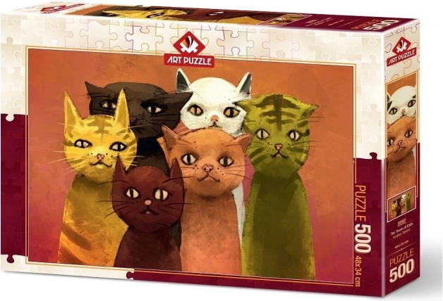 Zrelaksuj się przy wysokiej jakości puzzlach z 500 elementami z uroczym motywem kotów. Ułożony obraz ma wymiary ok. 48 × 34 cm i zapewnia przyjemną rozrywkę dla całej rodziny. Producent ART PUZZLE oferuje dodatkowo usługę dosłania brakującego elementu, dzięki czemu możesz cieszyć się układanką bez obaw.