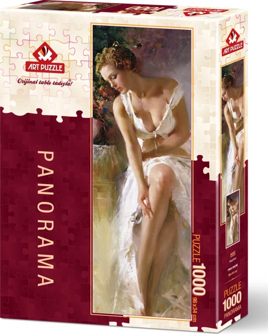 Pionowe puzzle Angelica oferują wyjątkowe wrażenia z układania dzięki wąskiemu i wysokiemu formatowi, który pięknie prezentuje się na ścianie. Tysiąc precyzyjnie wyciętych elementów tworzy szczegółowy motyw, który ucieszy zarówno początkujących, jak i doświadczonych entuzjastów.