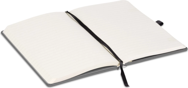 Strony w linie z delikatnymi 6‑milimetrowymi wierszami na wysokiej jakości papierze oferują komfortową przestrzeń na notatki, pomysły i zadania. Taśma‑zakładka ułatwia szybki powrót do ważnych miejsc. Delikatnie fakturowana powierzchnia nadaje się do brandingu – możesz wytłoczyć logo firmy i stworzyć reprezentacyjny upominek biznesowy.