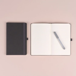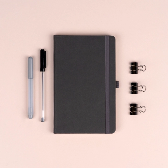 Ten stylowy szary notes to doskonały wybór do codziennych notatek, planowania i journalingu. Twarde okładki o delikatnie szorstkiej fakturze wyglądają profesjonalnie i niezawodnie chronią zawartość. Praktyczne detale, takie jak elastyczna gumka, materiałowa zakładka i pętelka na długopis, zapewniają wygodne użytkowanie w domu, w biurze i w podróży.