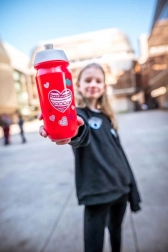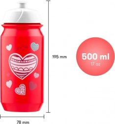 Praktyczna i lekka butelka w czerwonym kolorze z wesołymi serduszkami ucieszy dzieci i rodziców. Pojemność 500 ml jest w sam raz na całodzienny plan picia, a wytrzymały materiał bez BPA zapewnia bezpieczne użytkowanie każdego dnia.