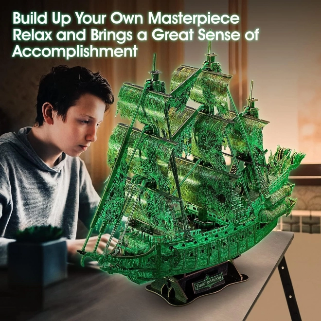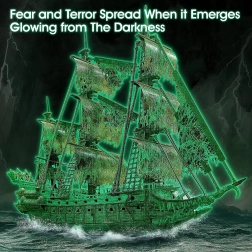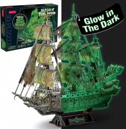 Ciesz się rodzinną zabawą z 3D puzzlami żaglowca Latający Holender, który po naświetleniu świeci w ciemności! Przepiękny model, który ucieszy każdego miłośnika morskich przygód.