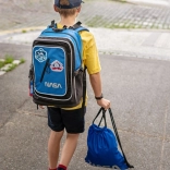 Niebieski worek na plecy wyposażony jest w wyraziste logo NASA, które świeci w ciemności i zwiększa widoczność.