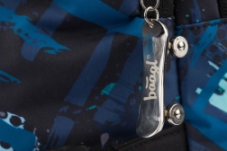 Elementy odblaskowe i metalowy brelok w kształcie deskorolki nadają plecakowi unikalny wygląd.