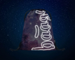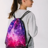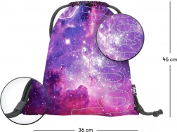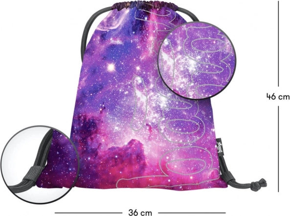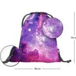 Worek z kosmicznym wzorem w odcieniach fioletu i różu, przypominający galaktykę.