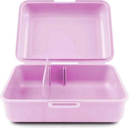 Wewnętrzna przegroda pomaga oddzielić owoce, pieczywo czy ciastko, dzięki czemu smaki ani struktury się nie mieszają. Kompaktowe wymiary świetnie mieszczą się w dziecięcych tornistrach i plecakach.