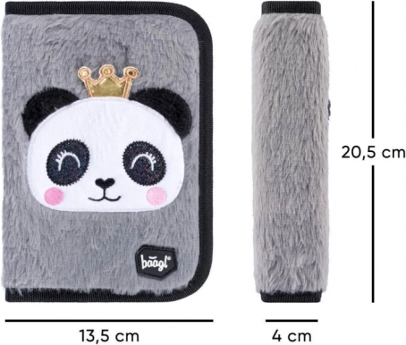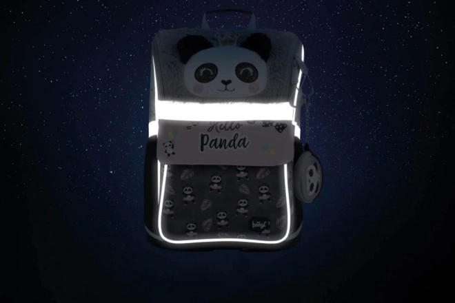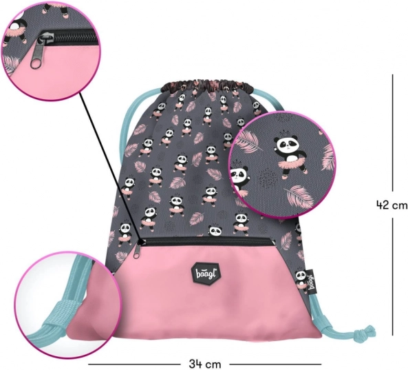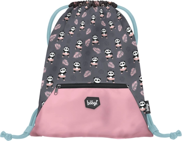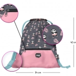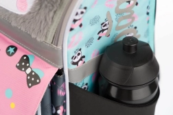 W skład zestawu wchodzi także klasyczny, jednoprzestrzenny piórnik z dwiema klapkami i wysokiej jakości zamkiem oraz praktyczny worek z mocnego, zmywalnego materiału z przednią kieszenią na zamek. Cały zestaw zdobi popularny motyw pandy i uzupełniają go elementy odblaskowe dla lepszej widoczności.