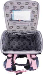 Odchylany system otwierania umożliwia dostęp do zawartości prosto z ławki. W środku znajduje się organizer z gumką, przezroczysta kieszeń na plan lekcji oraz dużo miejsca na podręczniki i drugie śniadanie.