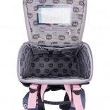 Szkolny tornister BAAGL Zippy Panda został zaprojektowany dla 1.–2. klasy szkoły podstawowej. Oferuje usztywnione korpus, przemyślany podział wnętrza oraz nowy odchylany system, dzięki któremu uczeń łatwo sięga po przybory prosto z ławki. Dzięki przesuwnemu systemowi ERGO ADJUSTABLE SYSTEM szelki można dokładnie dopasować do wzrostu dziecka, więc plecak wygodnie leży przez cały dzień.