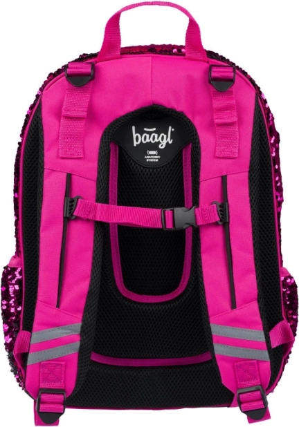 Różowe cekiny i czarne gwiezdne wzory nadają plecakowi wyrazisty styl, idealny dla dzieci, które chcą się wyróżniać z tłumu.