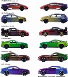 W serii znajdziesz ikoniczne sportowe auta: PORSCHE 911 GT3 RS, LAMBORGHINI HURACÁN, AUDI S5 COUPÉ, FORD MUSTANG GT, DODGE SRT VIPER oraz RENAULT MEGANE R.S.. Długość każdego autka to około 7,5 cm, a w zestawie znajduje się również karta kolekcjonerska.