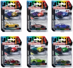 Każdy model jest metalowy z plastikowymi elementami, ma wolny bieg, otwierane części i amortyzowane koła dla płynnej jazdy i wyglądu wiernego prawdziwym sportowym autom.