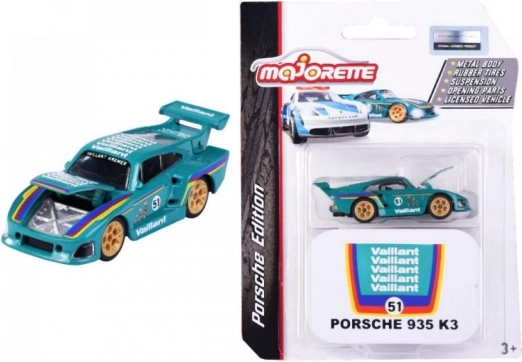 Ten dopracowany w detalach samochodzik Porsche Motorsport Deluxe o długości 7,5 cm ucieszy małych kierowców i zapalonych kolekcjonerów. Metalowa konstrukcja w połączeniu z gumowymi oponami zapewnia przyjemne wrażenia z jazdy i długą trwałość, a otwierane elementy ujawniają imponujące detale wnętrza.
