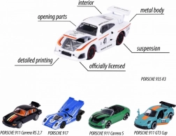 Samochodziki powstały na oficjalnej licencji PORSCHE, z realistycznymi proporcjami, autentycznymi nadrukami i wyrazistymi detalami nadwozia.