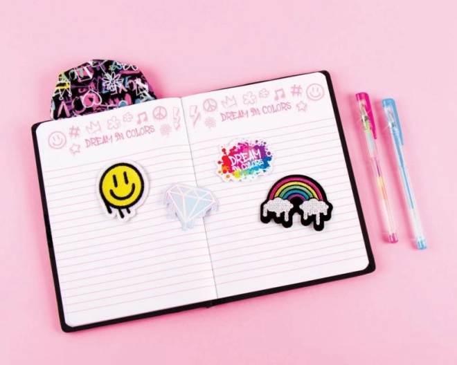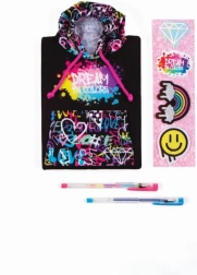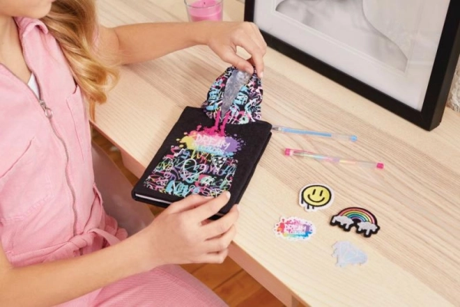 Notes z kapturem w stylu graffiti jest idealny dla dziewcząt od 6 roku życia, które chcą wyrazić swoją kreatywność. Ten nowoczesny notes to idealne miejsce na zapisywanie doświadczeń, tajemnych snów lub planów na przygody. Dostarczany z dwoma długopisami, naklejkami i naszywkami samoprzylepnymi, które pozwolą personalizować każdy notes.