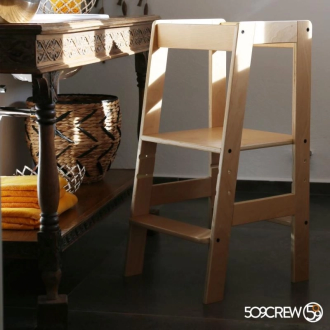 Wieża edukacyjna naturalna to idealna pomoc do bezpiecznego i zabawnego angażowania dzieci w domowe aktywności. Wykonana z wysokiej jakości sklejki, oferuje regulację wysokości i maksymalne bezpieczeństwo.