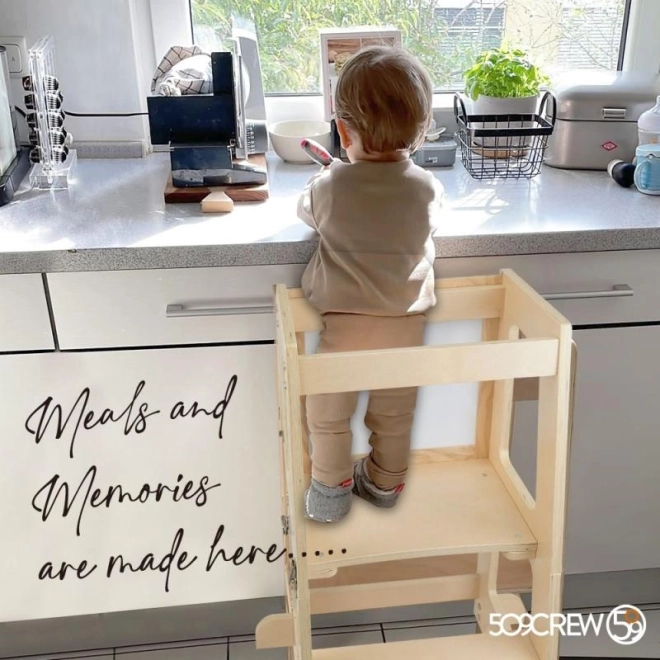 Odkryj magię nauki z Wieżą edukacyjną naturalną, która łatwo dostosowuje się do Twoich potrzeb i wzrostu dziecka dzięki trzem poziomom regulacji platformy. To umożliwia dzieciom bezpieczny dostęp do większości kuchennych blatów i umywalek łazienkowych.