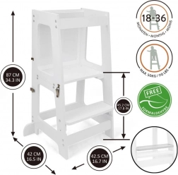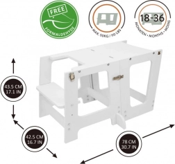 Wieża edukacyjna 3w1 biała oferuje wszechstronność dzięki trzem różnym konfiguracjom: wieża, stół i krzesło. Wykonana z wysokiej jakości i trwałego sklejki, jest łatwa w montażu i ma maksymalną nośność aż 50 kg.