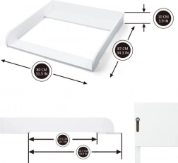 Ten przewijak, wykonany z wysokiej jakości drewna, zapewnia bezpieczne i stabilne miejsce do przewijania dziecka. Jest łatwy w montażu, co umożliwia szybkie i proste użytkowanie. Dzięki możliwości przedłużenia przedniej płyty zapewnia dodatkową przestrzeń, gdy jest potrzebna.