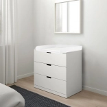 Drewniana nakładka przewijak na komodę z prostym montażem i możliwością przedłużenia przedniej płyty o 4 cm. Odpowiednia do komód IKEA takich jak Nordli, Malm i Hemnes.