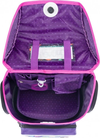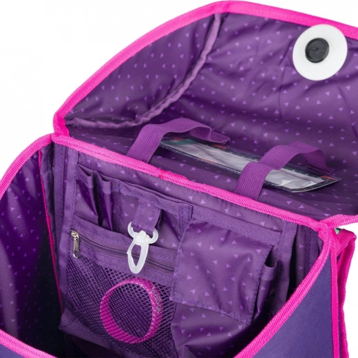 • Wewnątrz tornistra znajduje się przezroczysta kieszeń z planem lekcji oraz wewnętrzny organizer umożliwiający równomierne rozłożenie ciężaru.