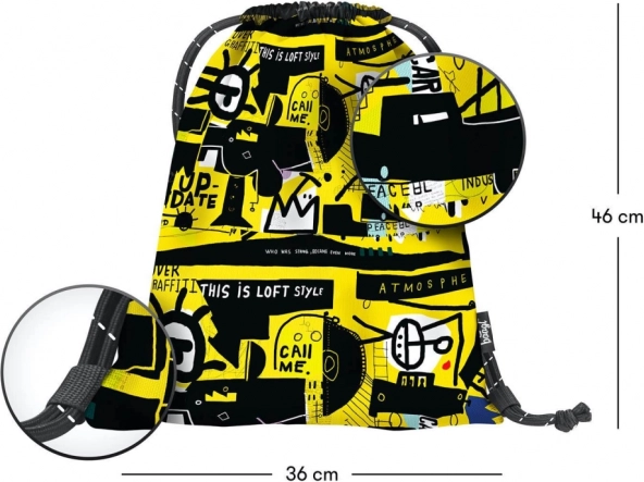 Worek oferuje wygodne noszenie na plecach, świetnie sprawdzi się na obuwie, sprzęt sportowy i drobiazgi. Jego żywa grafika i miejski styl podkreślą Twój outfit i zapewnią, że będziesz widoczny.