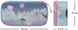 Piórnik Baagl Skate Moon wyróżnia się nowoczesnym designem z motywem gór i planety w niebiesko‑różowej kompozycji. Dzięki solidnemu zamkowi i wytrzymałemu materiałowi bezpiecznie ochroni Twoje przybory do pisania i drobne akcesoria szkolne.