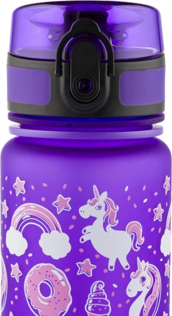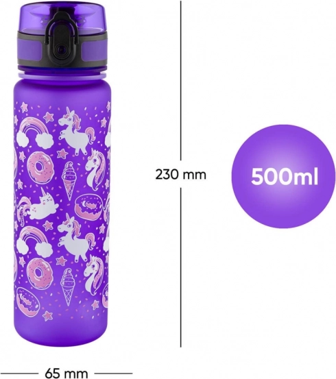 Butelka jest ozdobiona uroczymi motywami jednorożców, które przypadną do gustu każdemu dziecku. Łączy w sobie zabawny wygląd ze świeżymi kolorami.
