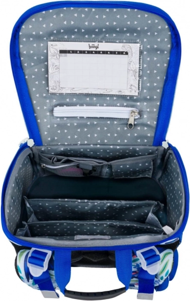 - Praktyczna organizacja: Odchylany system otwierania, przezroczysta kieszeń z planem lekcji oraz organizer dla równomiernego rozłożenia ciężaru.