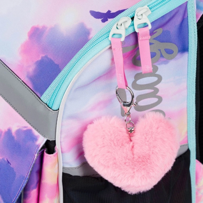Dodatkowe cechy obejmują izolowaną przednią kieszeń na drugie śniadanie, lekką konstrukcję o masie 1 100 g i pojemność 18 l. Tornister wykonano z materiału wodoodpornego, a dzięki sztywnemu dnu stabilnie stoi. Dla bezpieczeństwa dziecka zastosowano elementy odblaskowe, a w zestawie znajduje się również modna pluszowa zawieszka.