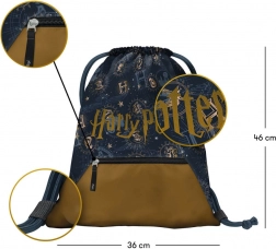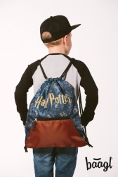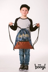 Praktyczny woreczek na obuwie lub kapcie z motywem HARRY Potter Hogwart. Wykonany z trwałego, zmywalnego materiału, dolna część zawiera kieszeń na suwak.