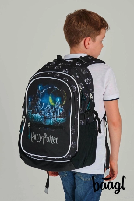 Plecak oferuje unikalny design z tematyką Harry Potter, ukazując Hogwart w magicznym świetle.