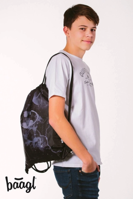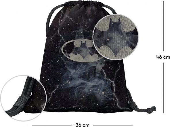 Praktyczny woreczek na obuwie lub inne drobiazgi w stylu Batmana od marki BAAGL. Idealny do zajęć w czasie wolnym z możliwością noszenia na plecach dzięki solidnym sznurkom.