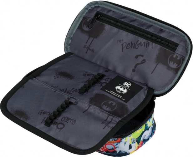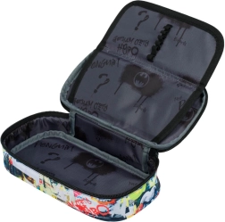 Ten piórnik szkolny z motywem Batman Komiks oferuje oryginalne komiksowe wzory, które przyciągną wszystkich fanów superbohaterów. Wyposażony jest w odchylaną wewnętrzną przekładkę, co ułatwia organizację. Posiada również wewnętrzną kieszeń na zamek oraz specjalną przegródkę na plan lekcji, co zwiększa jego praktyczne wykorzystywanie. Piórnik wykonany jest z materiałów tekstylnych, co zapewnia mu lekkość i wytrzymałość.