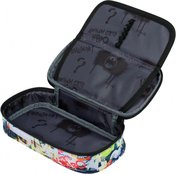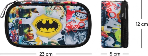 Kolorowy wzór komiksu z ikonicznym logo Batmana przyciąga uwagę i doskonale uzupełnia styl szkolnych akcesoriów.